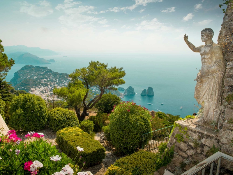 - Visitez Capri à pied en admirant ses jolies maisons en tuf à travers ses petites ruelles. Baladez-vous dans les élégants jardins d’Auguste puis dans le jardin de la villa San Michele. Son calme, sa vue magnifique et son atmosphère, suggèrent un doux moment d’évasion.